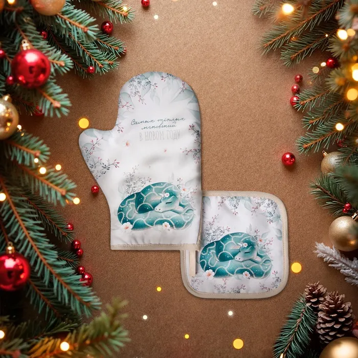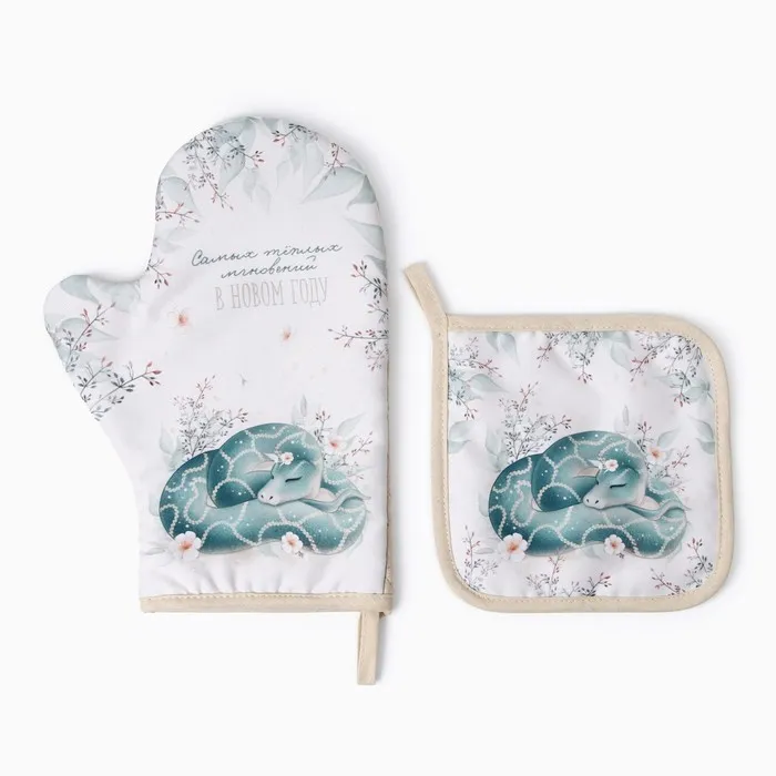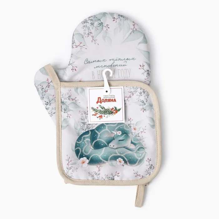 Набор кухонный «Доляна. Тёплых мгновений»: прихватка 17×17 см, варежка-прихватка 20×28 см, 35% хлопок — Характеристики