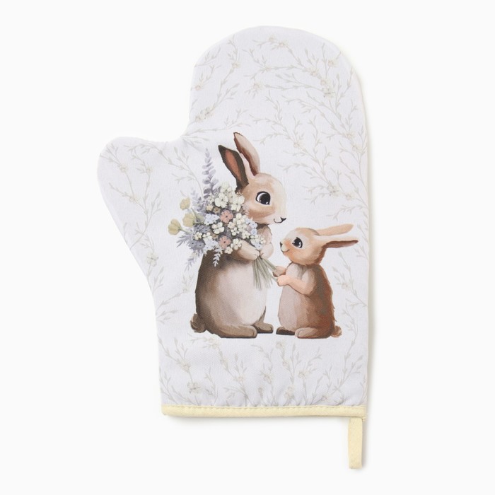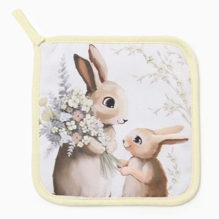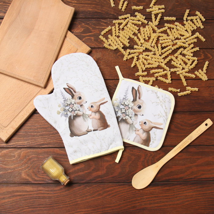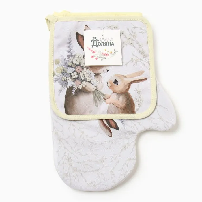 Набор кухонный «Доляна. Зайчата»: варежка 20×28 см, прихватка 17×17 см, 35% хлопок, 65% п/э — Характеристики