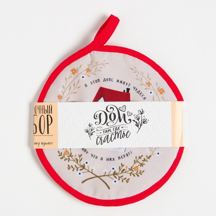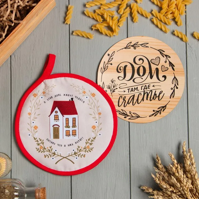 Набор кухонный «Дом там где счастье»: прихватка, подставка под горячее — Характеристики