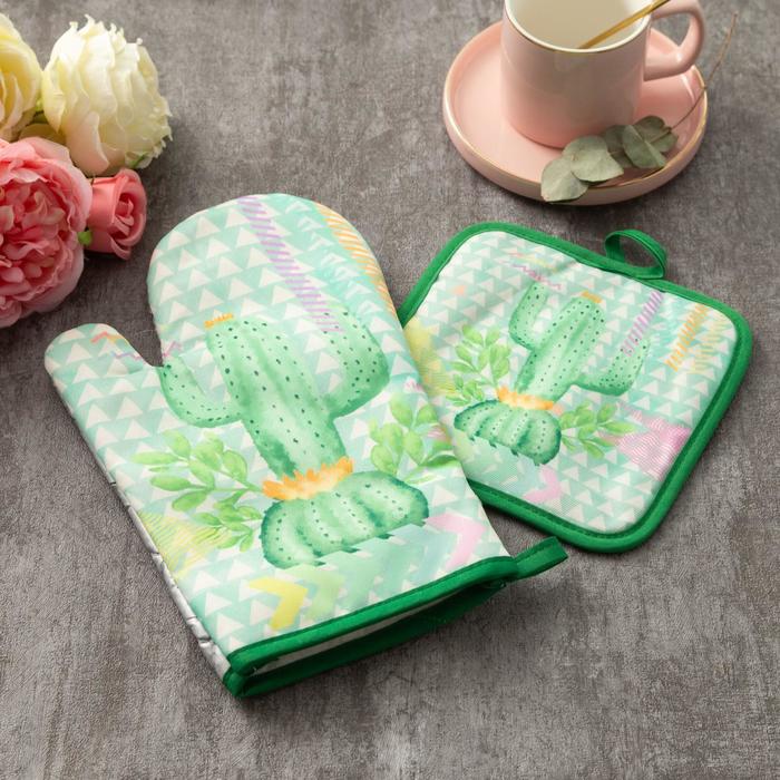 - В наборе две прихватки: удобная варежка и классическая квадратная.