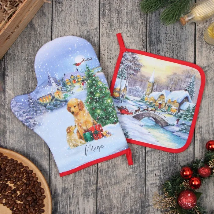 Набор кухонный «Этель» Christmas tree, варежка-прихватка 20×28 см, прихватка 19×19 см — Характеристики