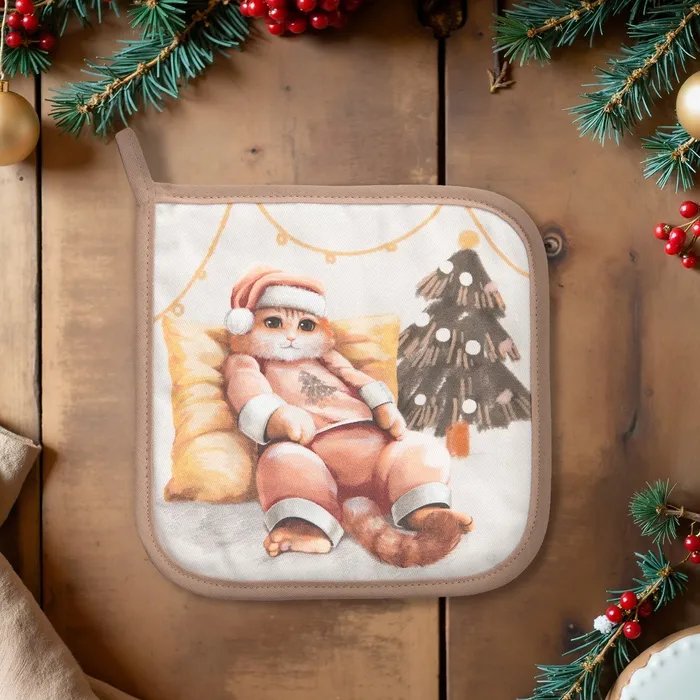 Прихватки выдерживают бережную стирку при 40 °C и глажку при 110 °C. Они не выцветают и не деформируются благодаря составу ткани и щадящему режиму отжима. Отбеливание не рекомендуется для сохранения яркости новогоднего рисунка.