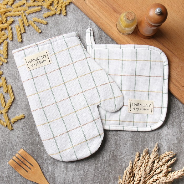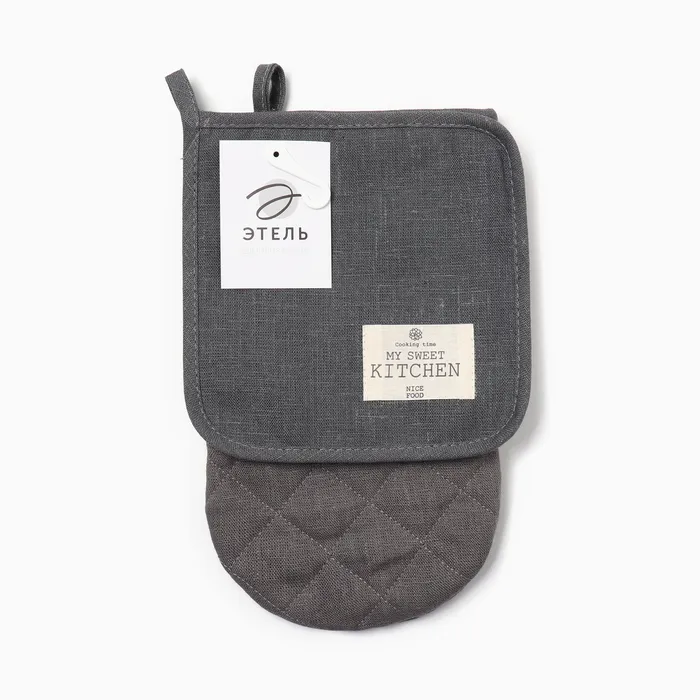 Набор кухонный «Этель» ECO light grey: варежка 15×28 см, прихватка 19×19 см, 100% лён, 245 г/м² — Характеристики