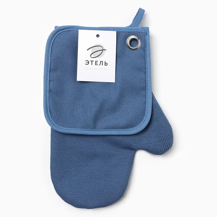 Набор кухонный Этель Freedom варежка-прихватка20х28см, прихватка 17х17см, цвет синий, лён 56% — Характеристики