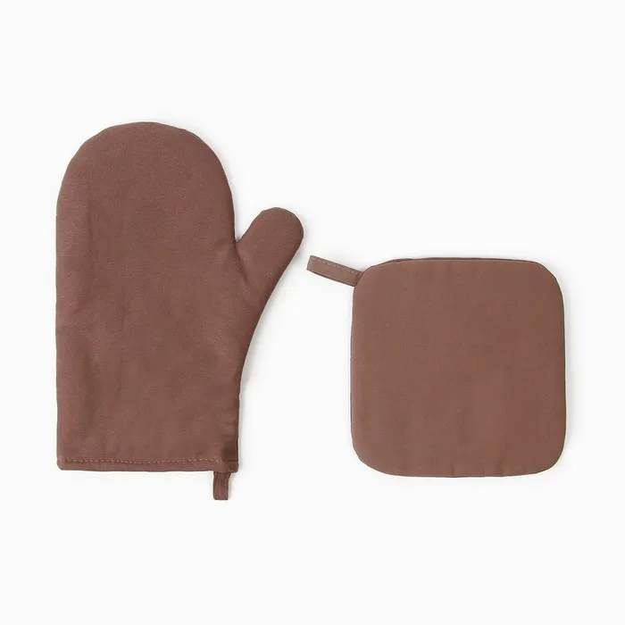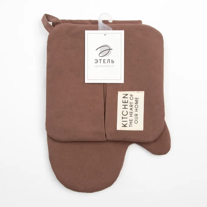 Набор кухонный Этель Kitchen, цвет. коричневый, варежка-прихватка 18х29 см, прихватка 19х19 см — Характеристики