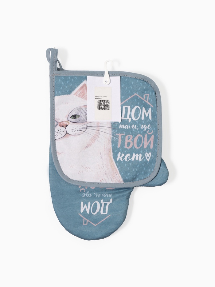 Набор кухонный «Этель. Кот», варежка-прихватка 20×28 см, прихватка 17×17 см — Характеристики