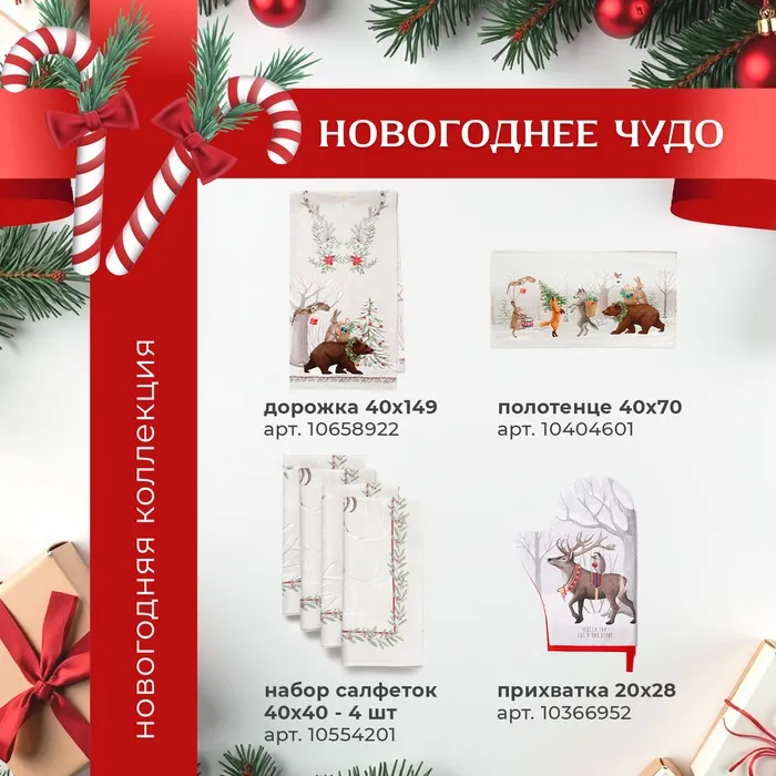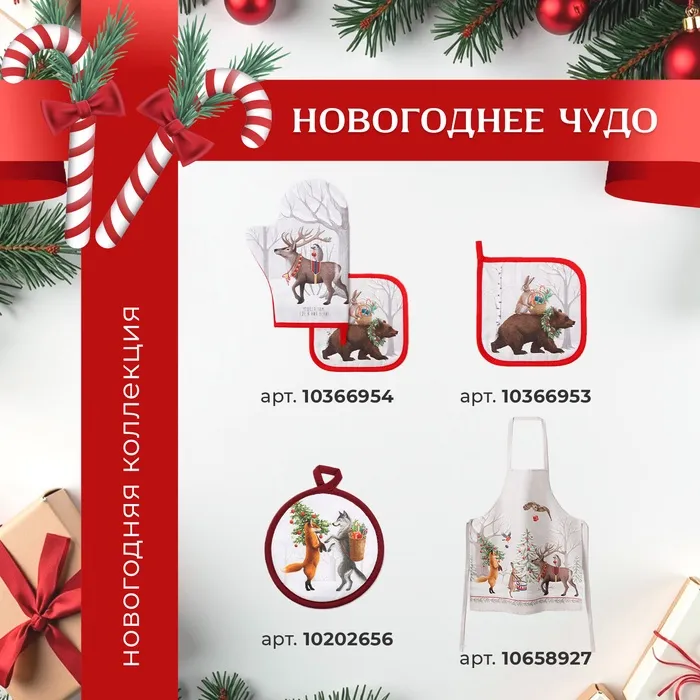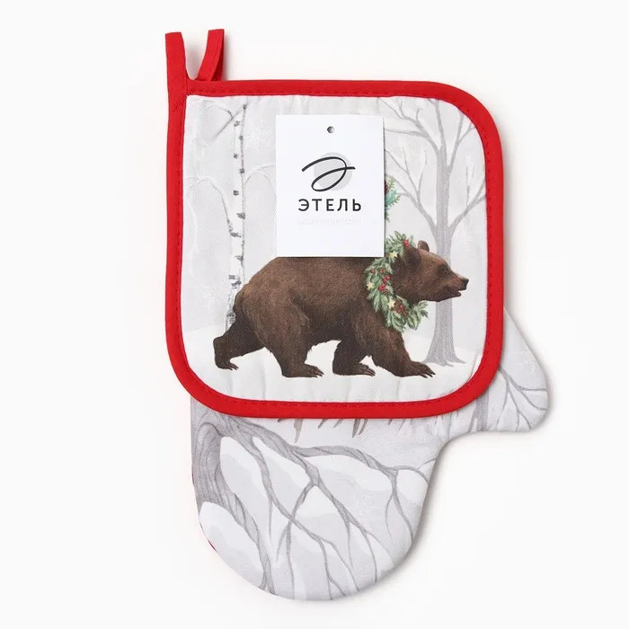 Набор кухонный Этель "Лесные звери" варежка 20х28см, прихватка 19х19см,100%хл — Характеристики
