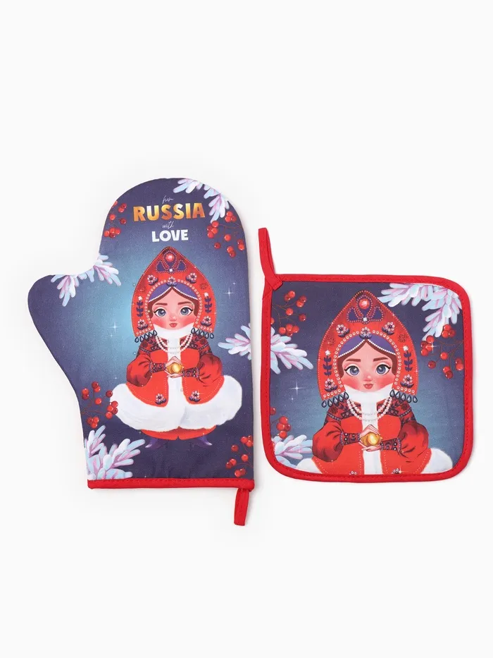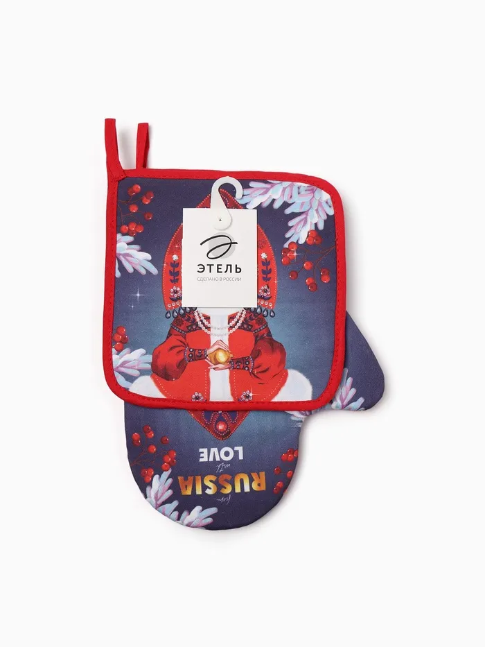 Набор кухонный "Этель" "Матрёшка": прихватка 19х19 см, варежка-прихватка 20х28 см, 100% хлопок — Характеристики