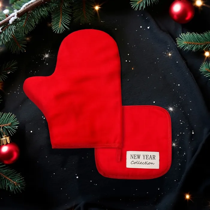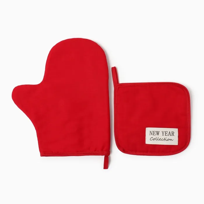 Набор кухонный "Этель" New year collection, цвет красный, варежка-прихватка 18х29 см,прихватка 19х19 см — Характеристики