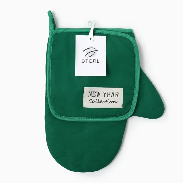 Набор кухонный "Этель" New year collection цвет зелёный, варежка 18х29 см, прихватка 19х19 см,100% хлопок — Характеристики