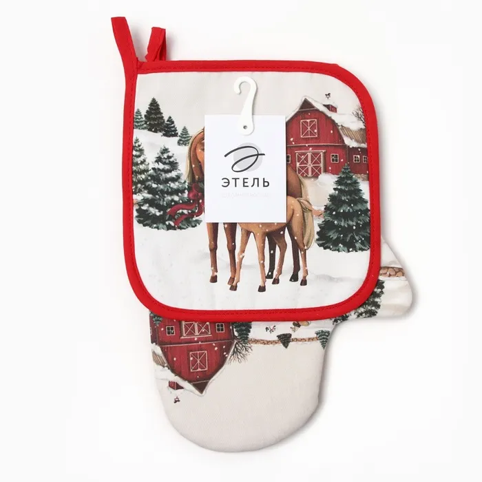 Набор кухонный Этель Нorse family, варежка 20×28 см, прихватка 19×19 см, 100%хлопок — Характеристики