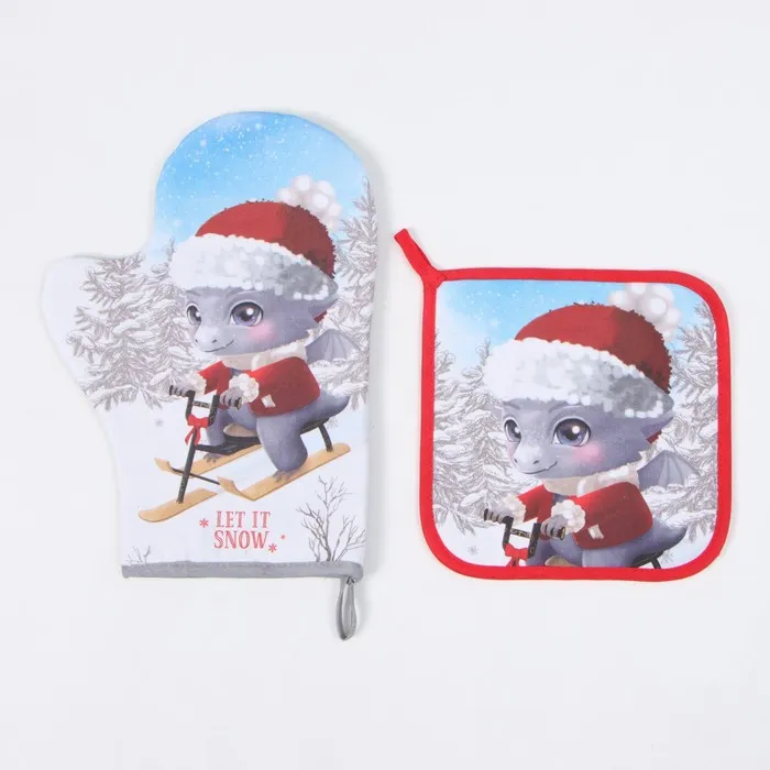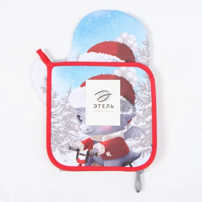 Набор кухонный "Этель" "Новогодние забавы": прихватка 19х19 см, варежка-прихватка 20х28 см, 100% х — Характеристики