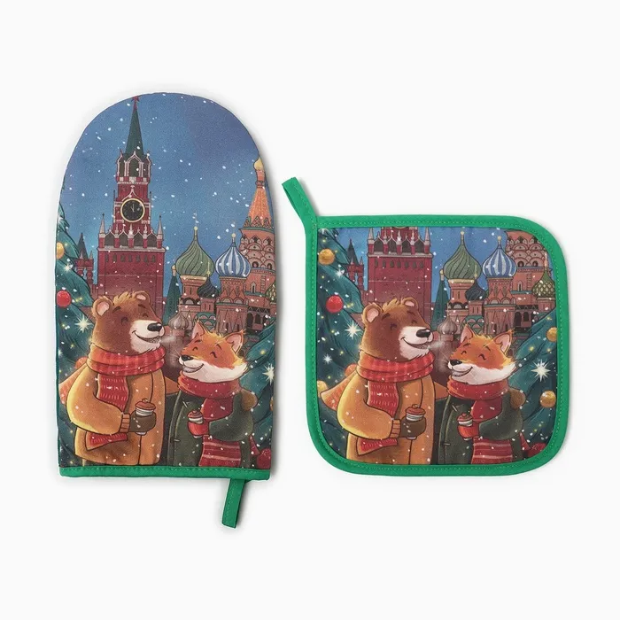 Набор кухонный Этель Red Square варежка 15х28см, прихватка 19х19см,100%хл — Характеристики