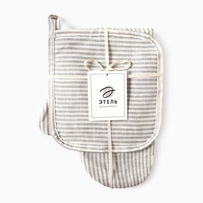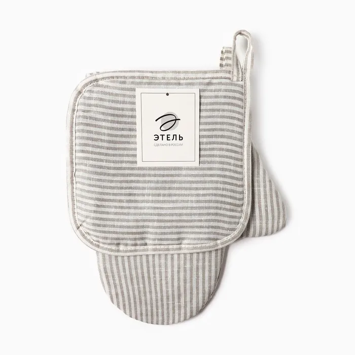 Набор кухонный Этель Straightforward: варежка 20×28 см, прихватка 19×19 см, лен 100%,180 г/м² — Характеристики