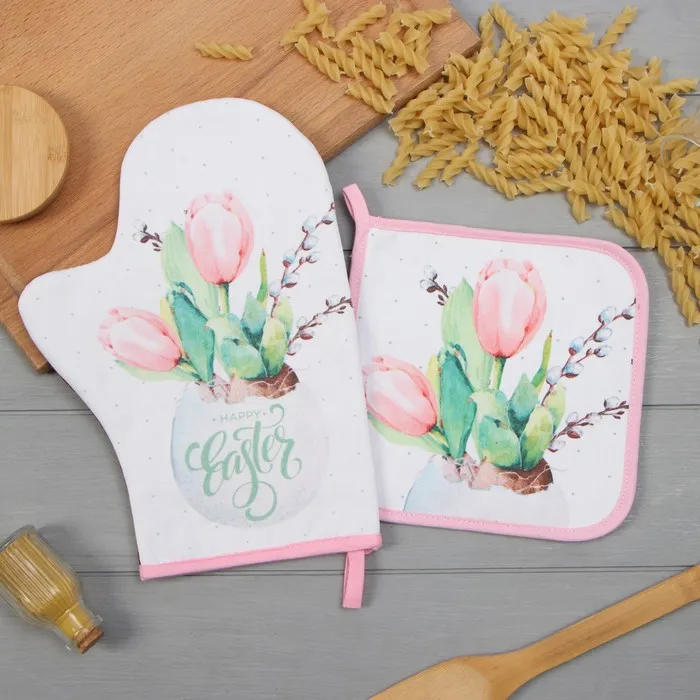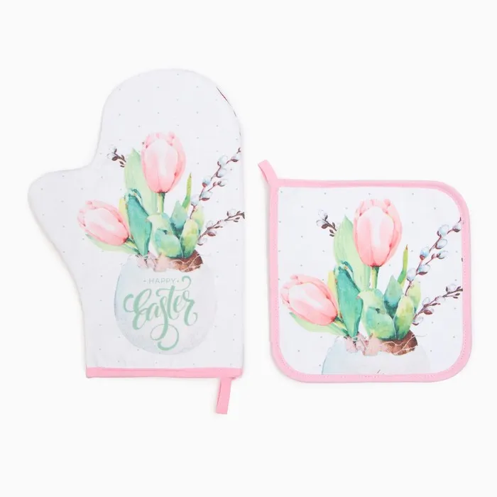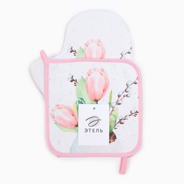 Набор кухонный «Этель. Тюльпаны»: варежка-прихватка 20×28 см, прихватка 19×19 см,100% хлопок — Характеристики
