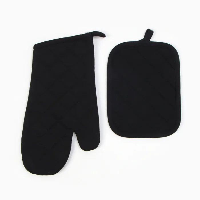 Набор кухонный Этель, цв. чёрный: варежка-прихватка 15х30 см, прихватка 18х21 см — Характеристики