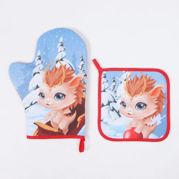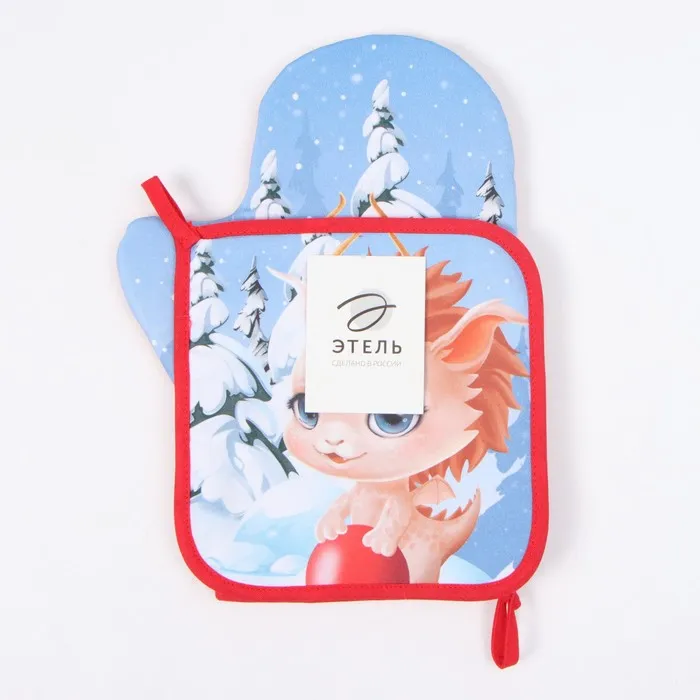 Набор кухонный "Этель" "Веселья и радости": прихватка 19х19 см, варежка-прихватка 20х28 см, 100% х — Характеристики
