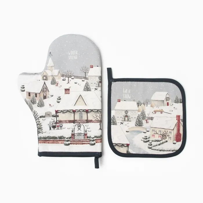 Набор кухонный Этель Winter village варежка 20х28см, прихватка 19х19см,100%хл — Характеристики
