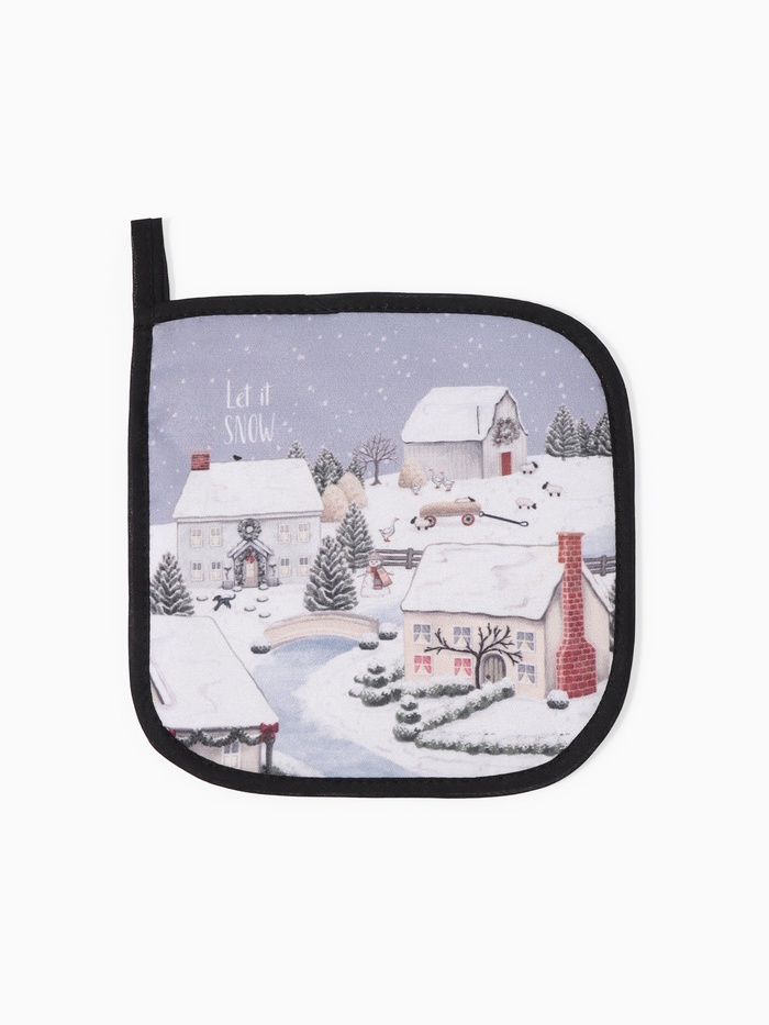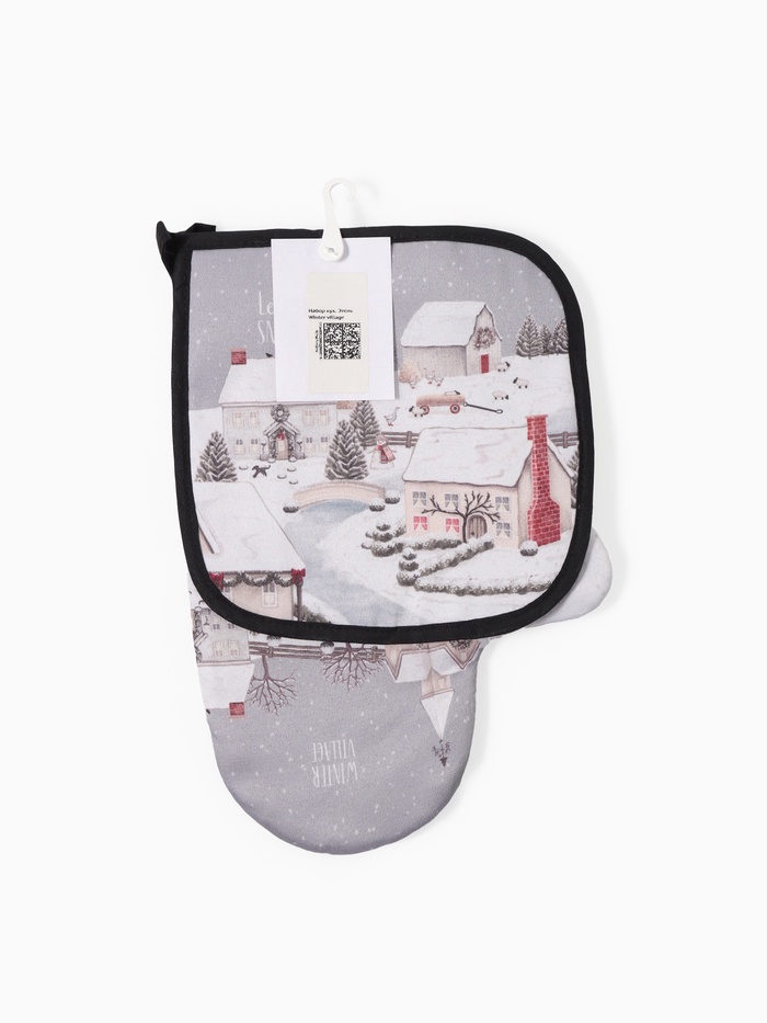 Набор кухонных прихваток с зимним сюжетом создаёт атмосферу уюта и праздника. В комплекте — удобная варежка для безопасного извлечения горячих форм и классическая квадратная прихватка. Плотный хлопок с добавлением полиэстра надёжно защищает руки от высокой температуры, а стойкий новогодний принт долго сохраняет яркость после множества стирок.