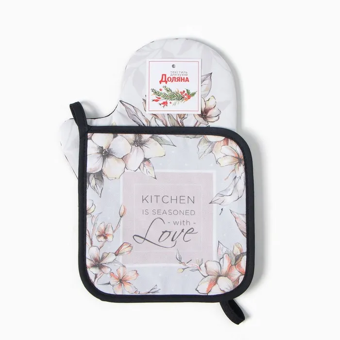 Набор кухонный «Floral mood» варежка-прихватка 20х28см, прихватка 19х19см,100% хл — Характеристики