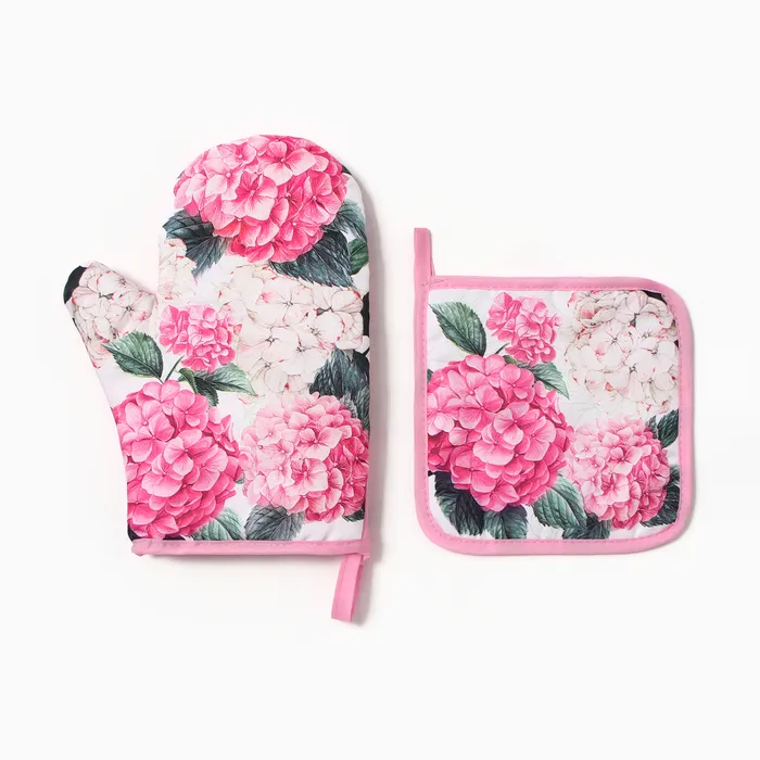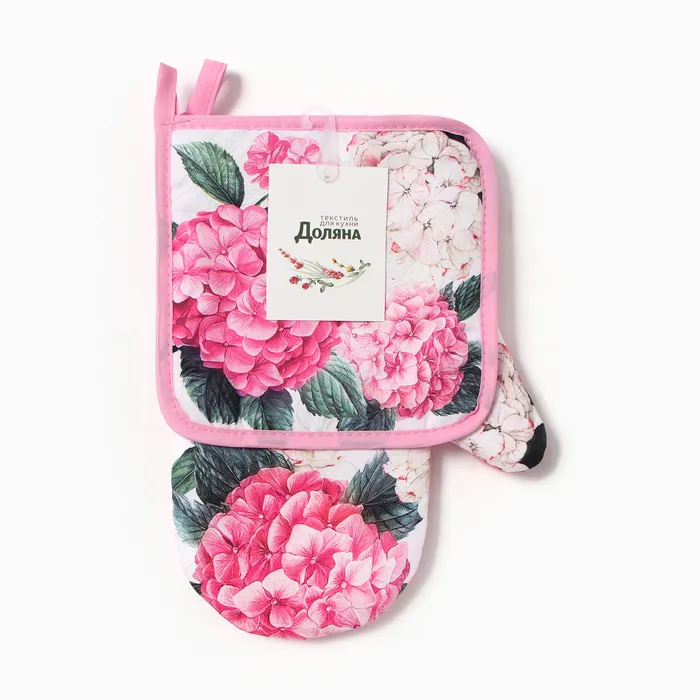 Набор кухонный "Гортензия" варежка-прихватка 20х27см, прихватка 17х17см 100% п/э — Характеристики