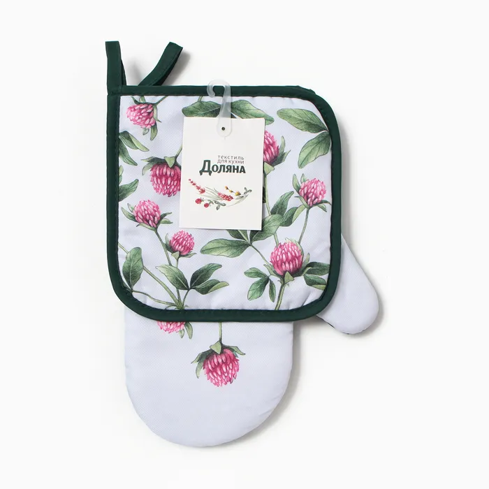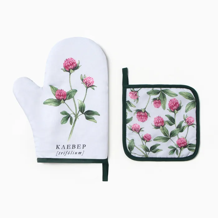 Набор кухонный "Клевер" варежка-прихватка 20х27см, прихватка 17х17см 100% п/э — Характеристики