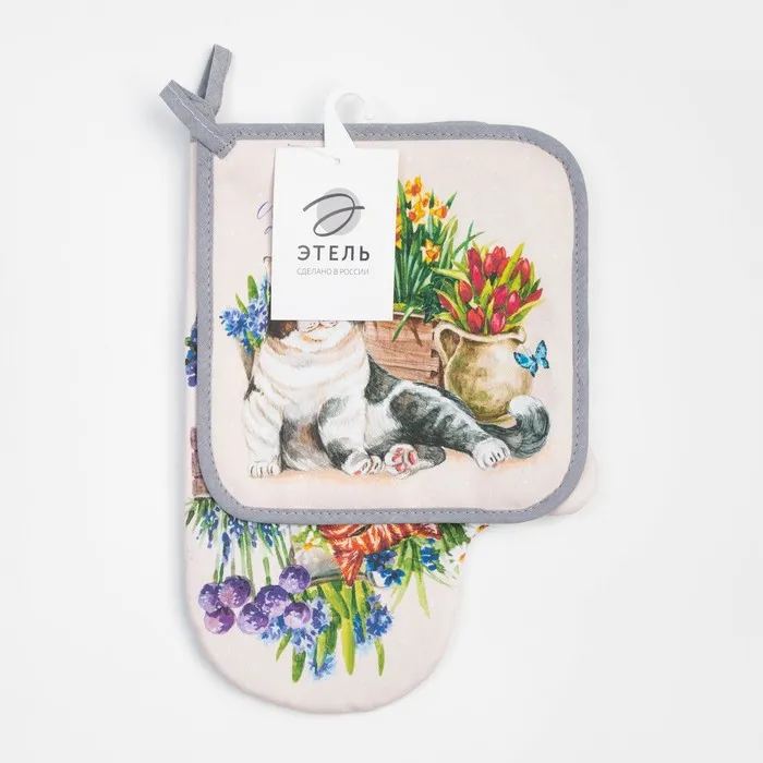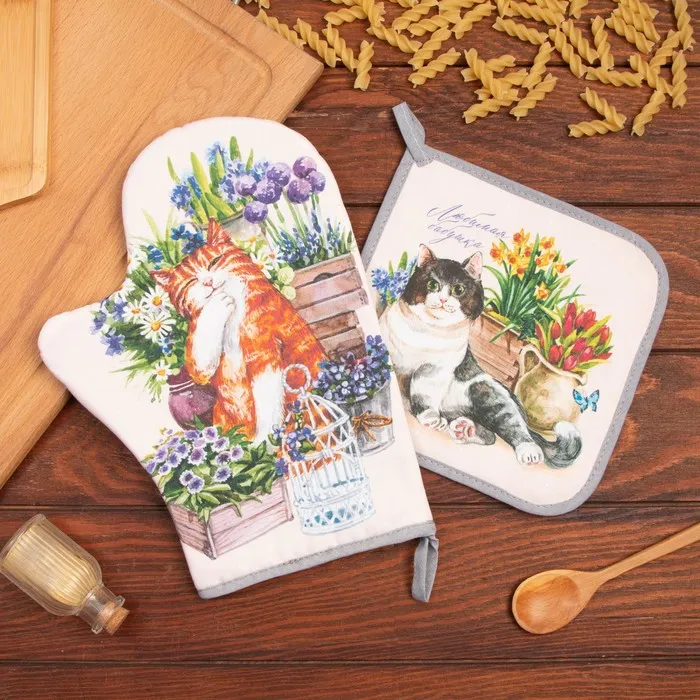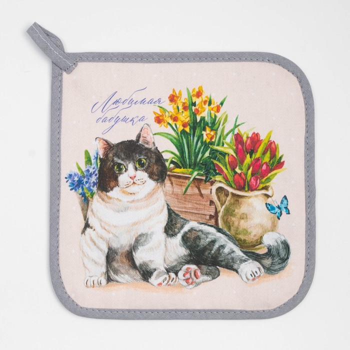 Набор кухонный "Любимая бабушка" варежка-прихватка 20х28см, прихватка 19х19см, 100% хлопок — Характеристики
