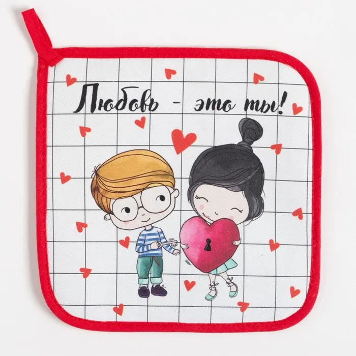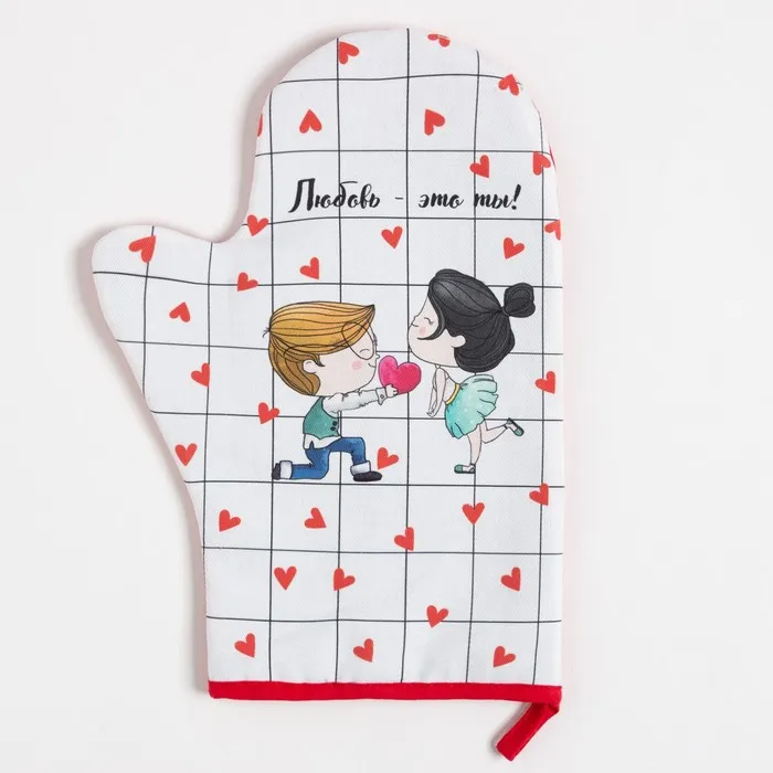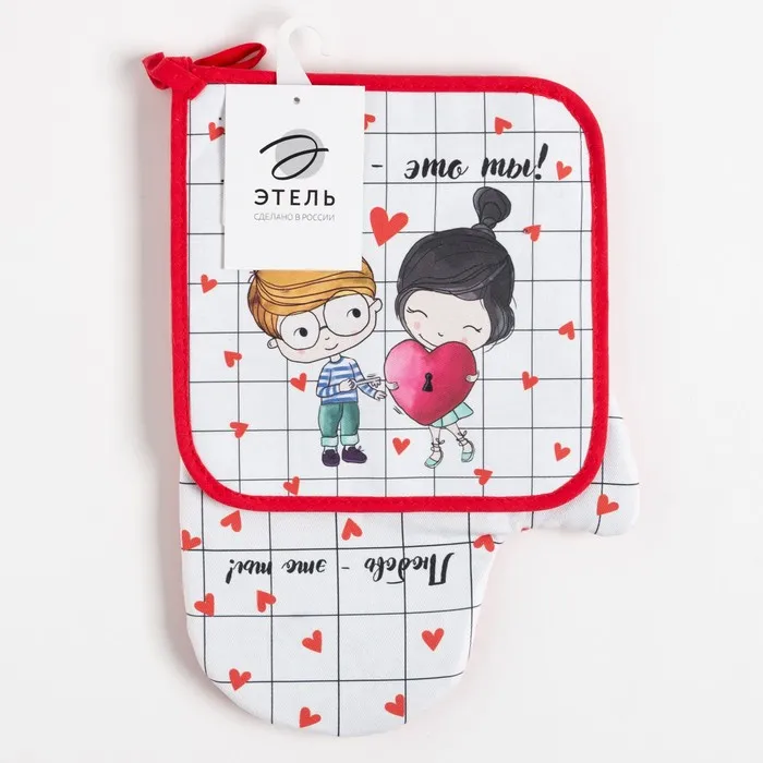 Набор Кухонный «Любовь - это ты», варежка-прихватка 20х28см, прихватка 19х19см, 100% хлопок — Характеристики