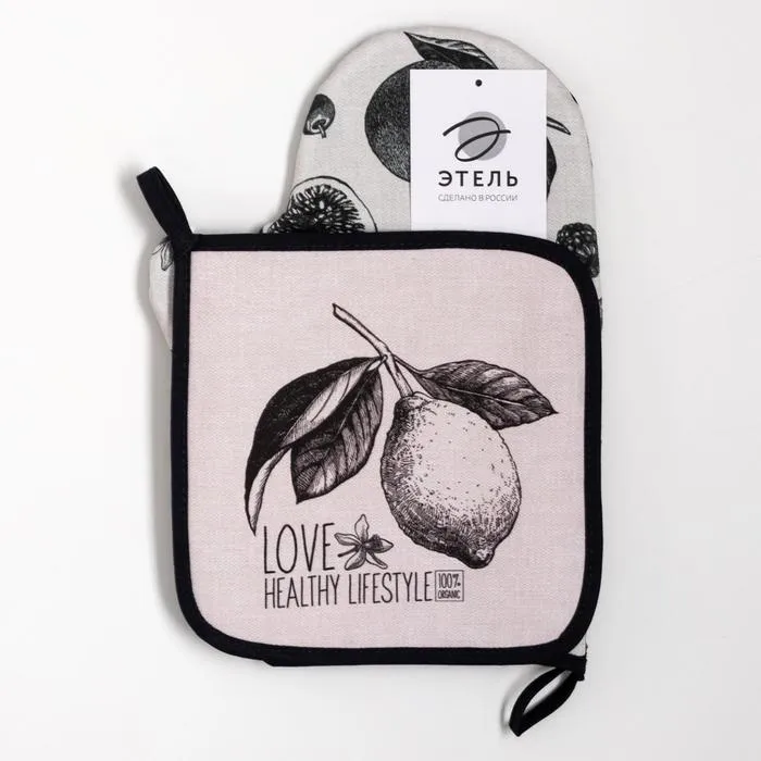 Набор кухонный «Love healthy» варежка-прихватка 20х28см, прихватка 19х19см,100% хл — Характеристики