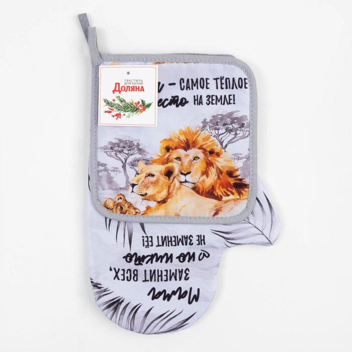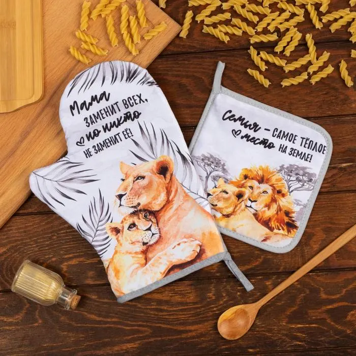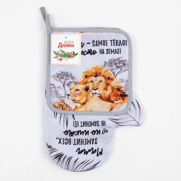 Набор кухонный «Львы» варежка-прихватка 20х28см, прихватка 17х17см — Характеристики
