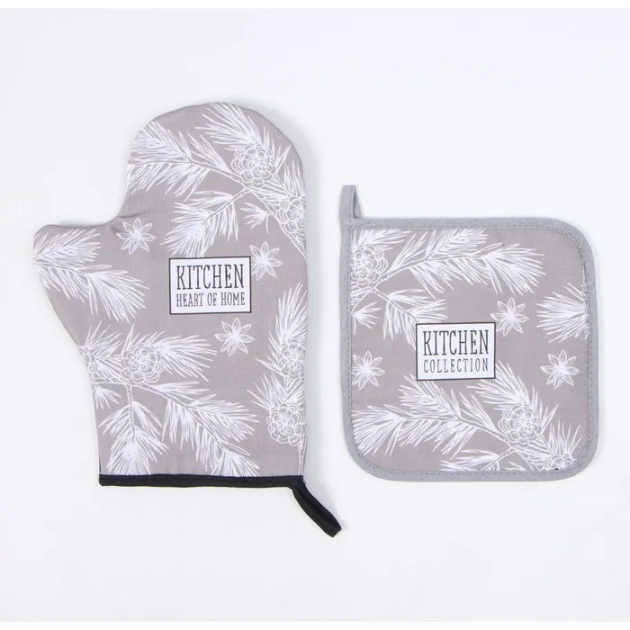 Набор кухонный новогодний Этель "Рождественские ветки": прихватка 19х19 см, Варежка-прихватка новогодняя 20х28 см, 100