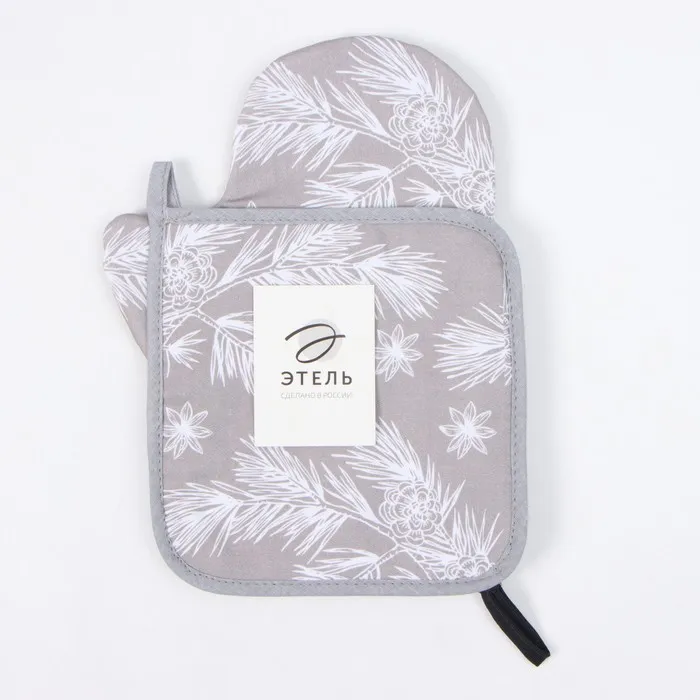 Набор кухонный новогодний Этель "Рождественские ветки": прихватка 19х19 см, Варежка-прихватка новогодняя 20х28 см, 100 — Характеристики