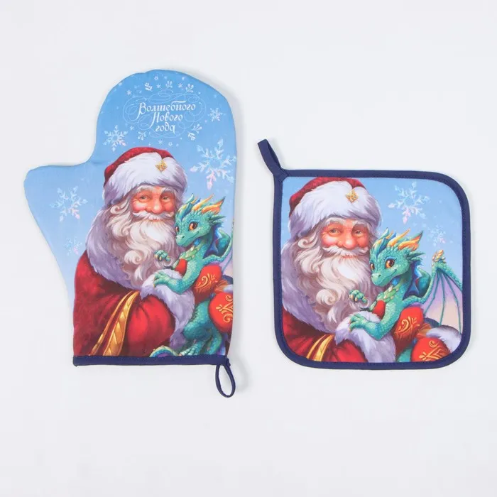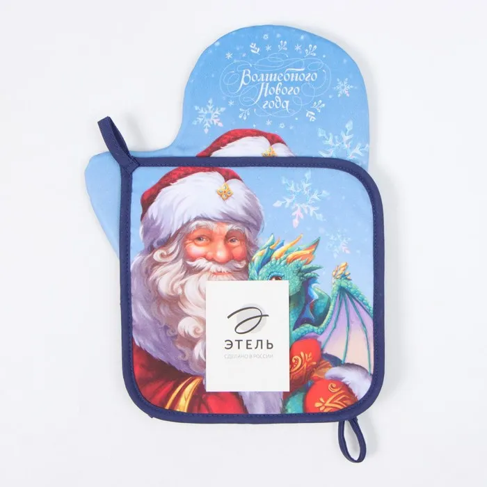 Набор кухонный новогодний Этель "Сказочный гость": прихватка 19х19 см, Варежка-прихватка новогодняя 20х28 см, 100% хл — Характеристики