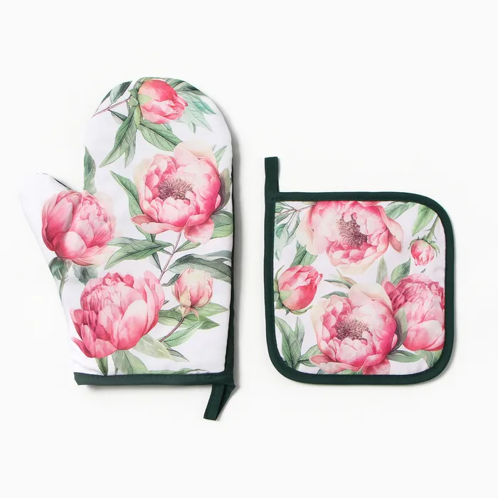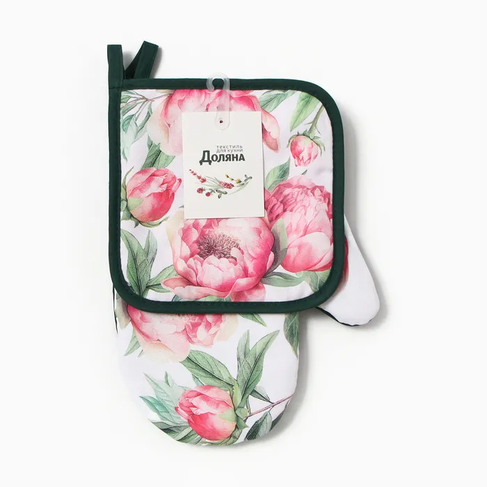 Набор кухонный "Пионы" варежка-прихватка 20х27см, прихватка 17х17см 100% п/э — Характеристики