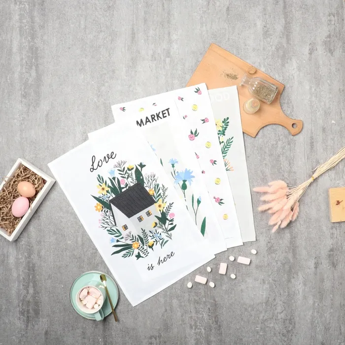 Набор кухонный полотенец Доляна "Love is here" 4 шт, 28х46 см, рогожка, 100% хлопок, 160г/м2 — Характеристики