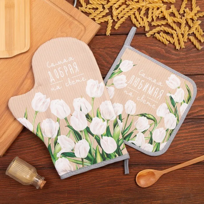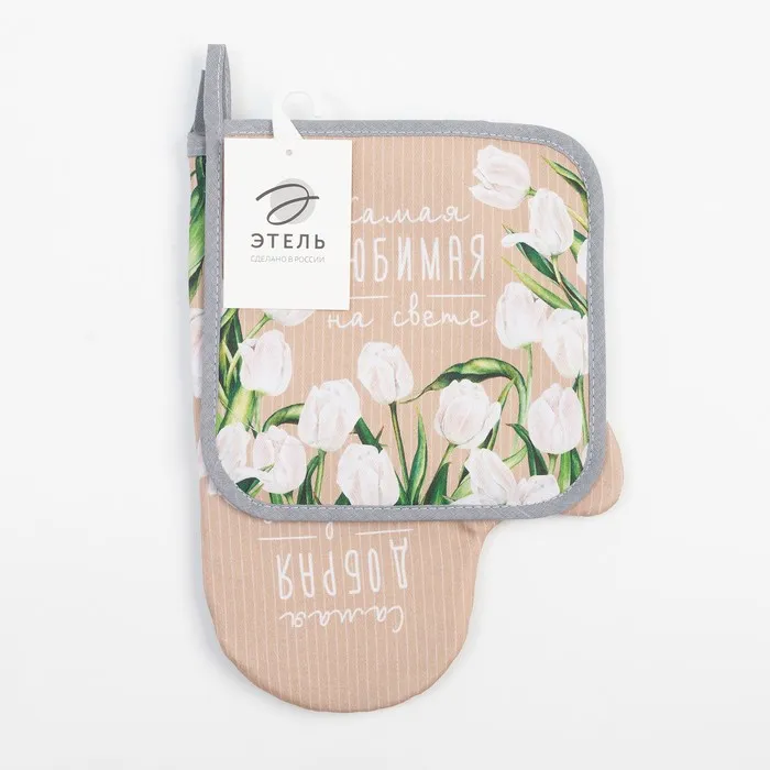Набор кухонный «Самая любимая»: варежка-прихватка 20×28 см, прихватка 19×19 см,100% хл — Характеристики