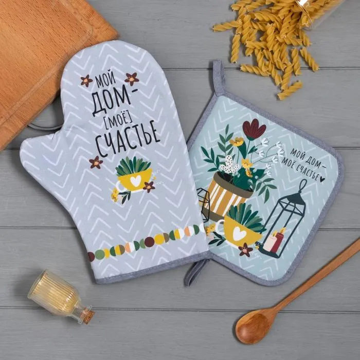 Набор кухонный «Счастье» варежка-прихватка 20х28см, прихватка 19х19см,100% хл — Характеристики