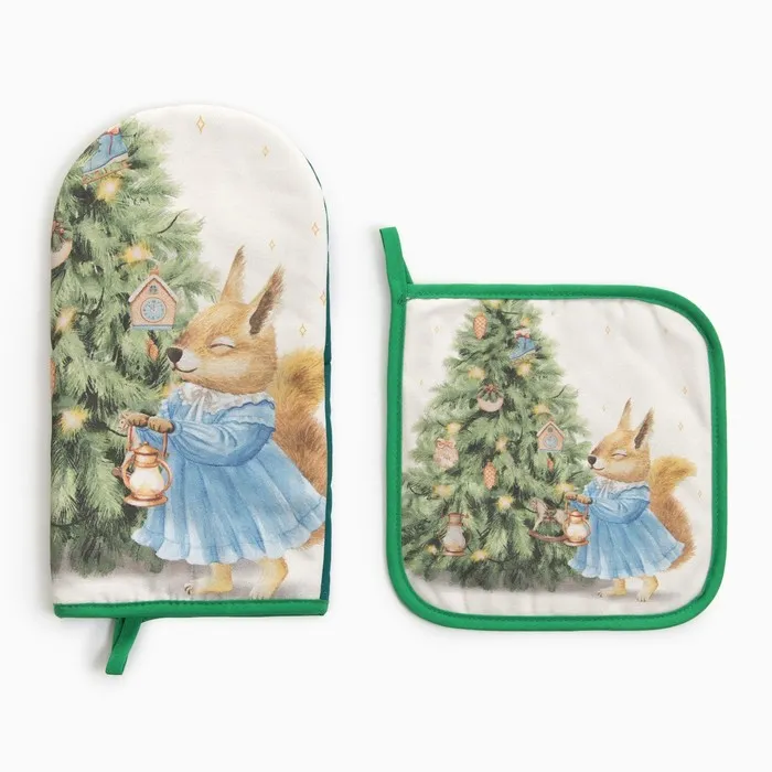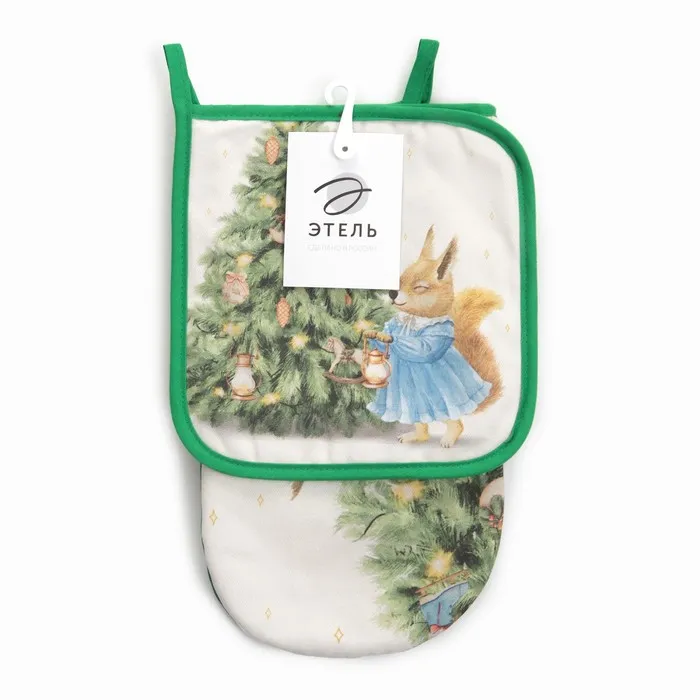 Набор кухонный "Сказочная ёлка" Варежка-прихватка новогодняя 15х28см, прихватка 19х19см,100%хл — Характеристики