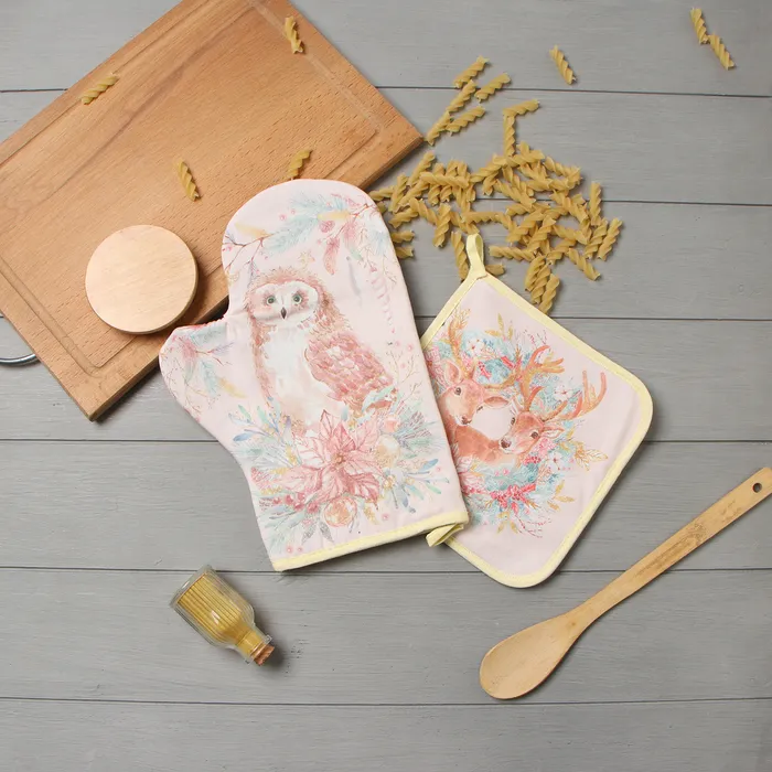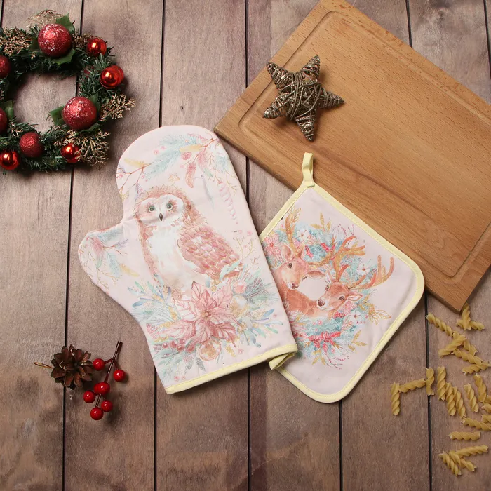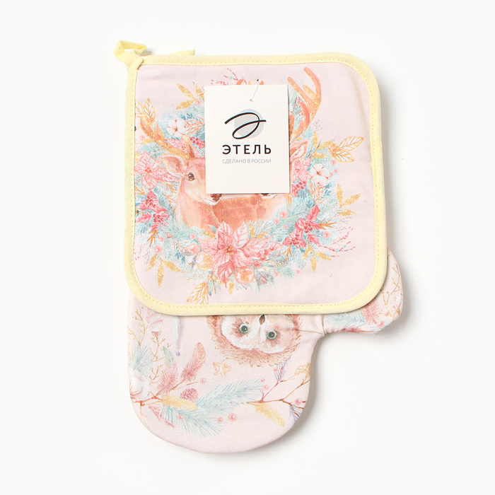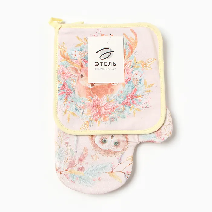 Набор кухонный «Сказочные звери» варежка-прихватка 20х28см, прихватка 19х19см,100%хл — Характеристики