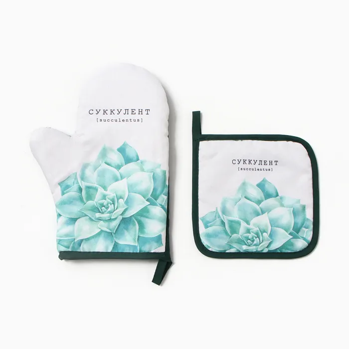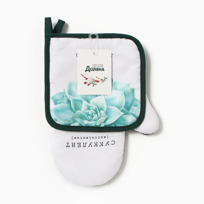 Набор кухонный "Суккулент" варежка-прихватка 20х27см, прихватка 17х17см 100% п/э — Характеристики