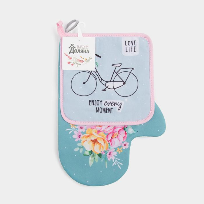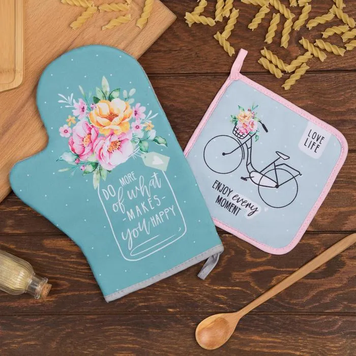 Набор кухонный «Цветочное настроение» варежка-прихватка 20х28см, прихватка 17х17см, 35% х/л,65% — Характеристики