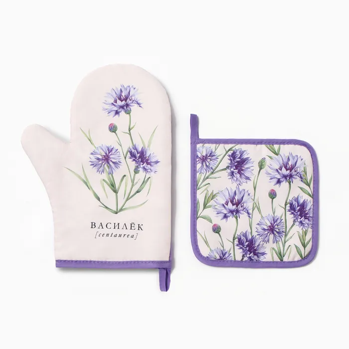 Набор кухонный "Василек" варежка-прихватка 20х27см, прихватка 17х17см 100% п/э — Характеристики