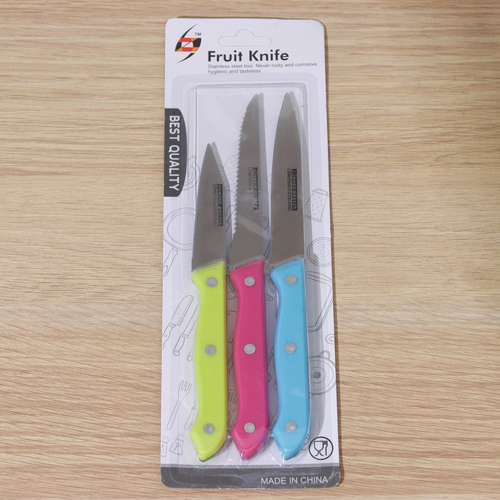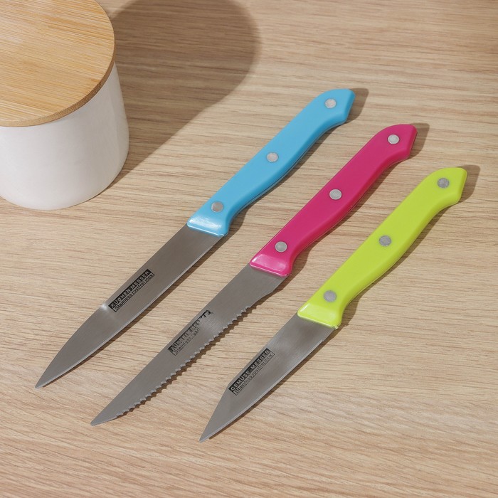 Набор кухонных ножей Доляна «Кулинарные изыски», 3 предмета, лезвие 19 см, 22 см, 23 см, цвет МИКС — Характеристики