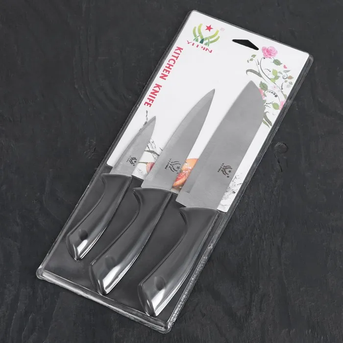 Набор кухонных ножей «Энеолит», 3 предмета: лезвие 8.5 см, 15 см, 17 см, чёрный — Характеристики