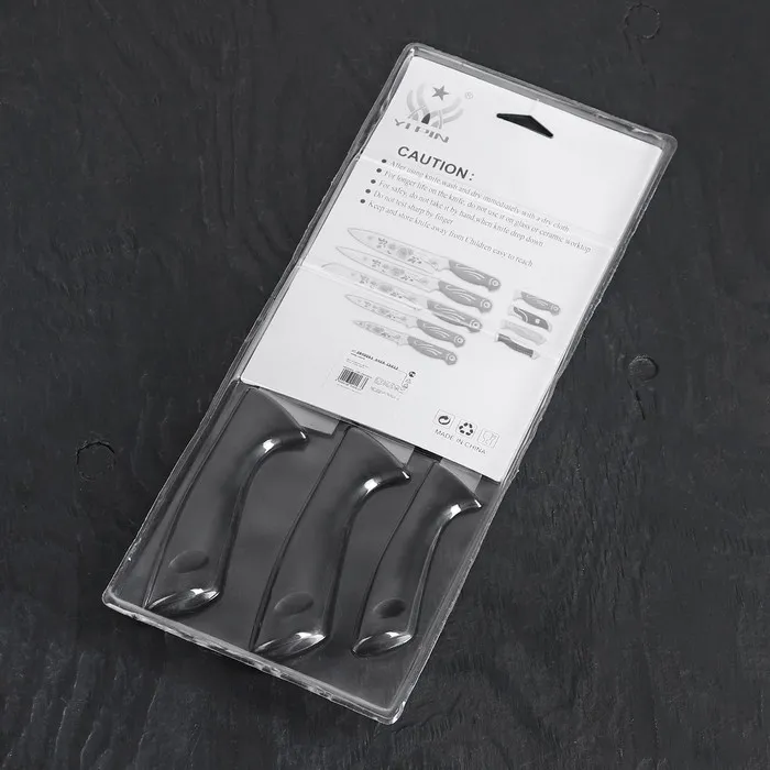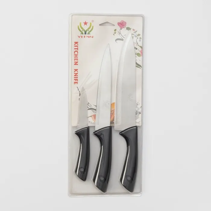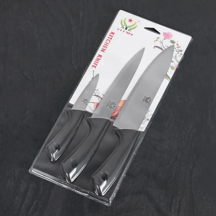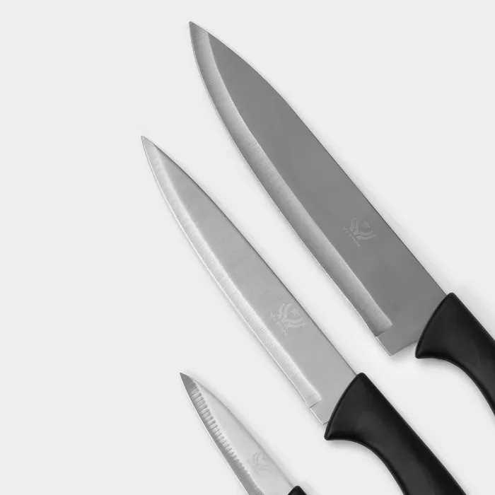 Набор кухонных ножей «Энеолит», 3 предмета, лезвие 8.5 см, 17 см, 20 см, чёрный — Характеристики