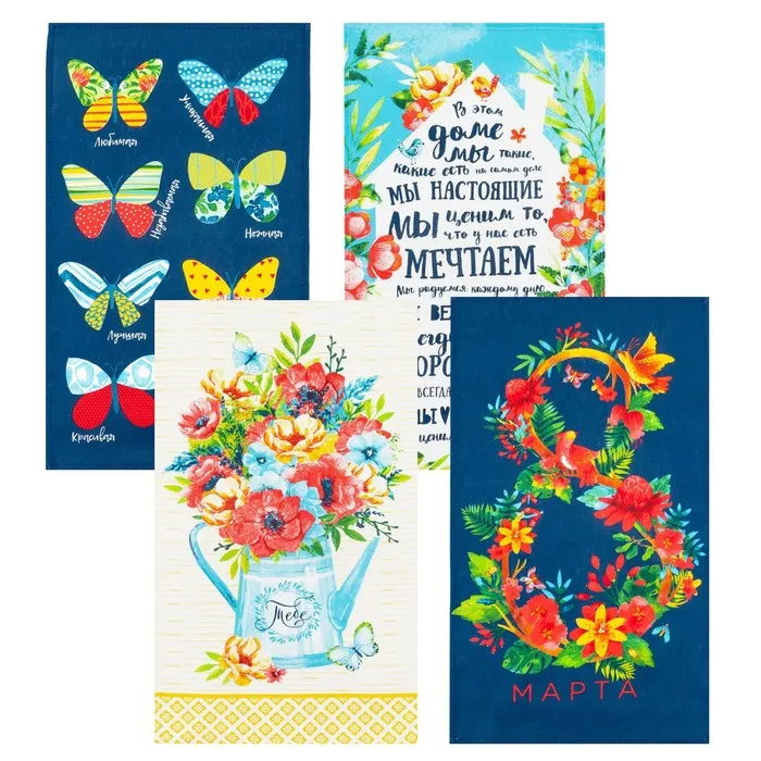 Набор кухонных полотенец Доляна «8 Марта», 35х60см-4шт, 100% хл — Характеристики