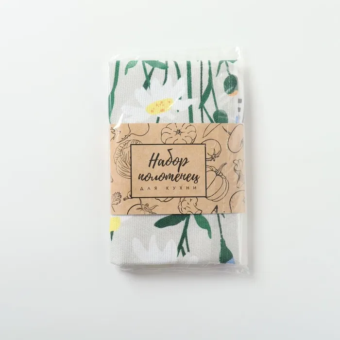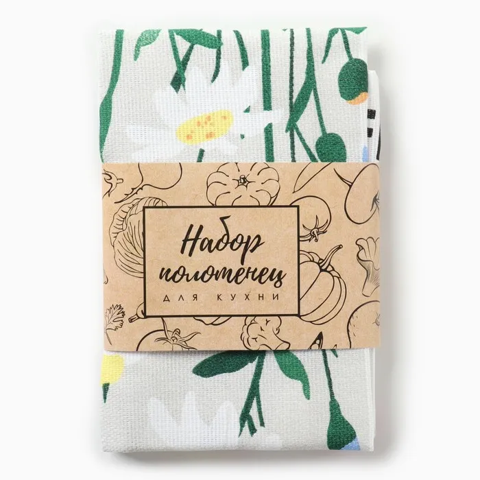 Набор кухонных полотенец Доляна "Букет" 2 шт, 28х46 см, рогожка, 100% хлопок, 160г/м2 — Характеристики