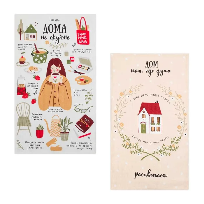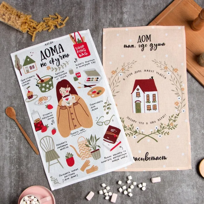 Набор кухонных полотенец Доляна «Дома не скучно» 35х60см-2шт, 100% хлопок — Характеристики