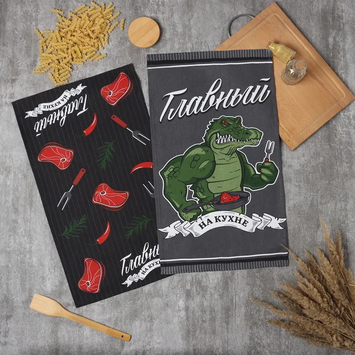 Набор кухонных полотенец Доляна "Главный на кухне" 2 шт, 35х60 см, рогожка, 100% хлопок, 160г/м2 — Характеристики