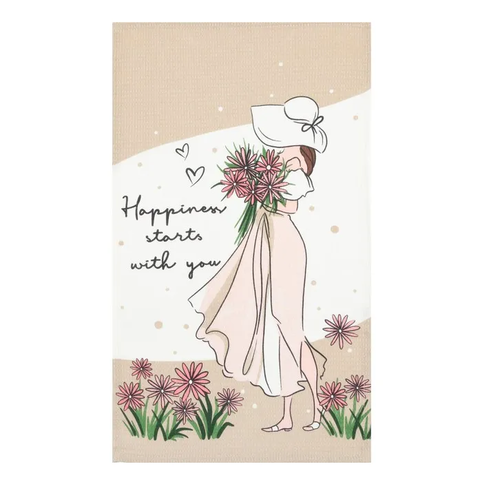 Набор кухонных полотенец Доляна Happiness, 35х60 см -2 шт, 100% хлопок, вафля 160 г/м2 — Характеристики